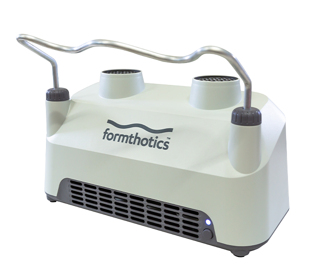 Når indlægget er i patientens sko, skal de varmes på Formthotics V20 varmemaskinen, som er specifikt designet og testet til at møde de højeste standarder inden for kvalitet, funktionalitet og resultat.